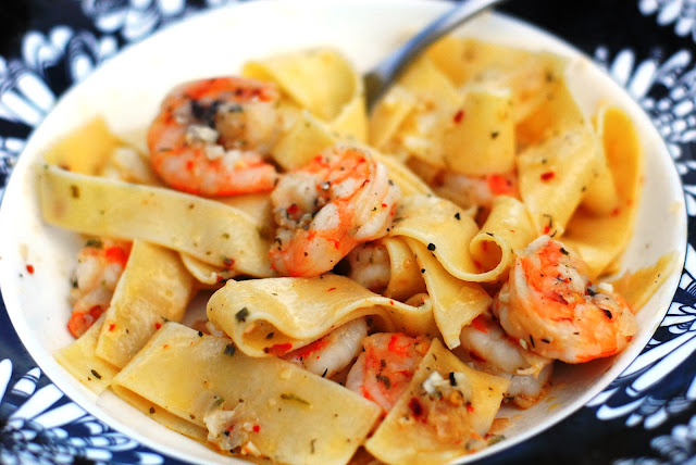 This shrimp scampi recipe was really, really good. I will admit that I had a few bites, even though pasta is the devil in my world these days. After all, a girl doesn't lose 30 pounds (yes, I hit the 30 mark this morning, woot!!!) by eating pasta soaked in butter and garlic. It's a damn shame, though, because pasta soaked in butter in garlic is SO GOOD. My husband snarfed it down like he hadn't eaten in weeks and I'm pretty sure my jeans would still be loose on him. Oh well. Anyway, this is a rich, once in awhile kind of dish that you should make for someone if you did something wrong or if you want them to marry you.